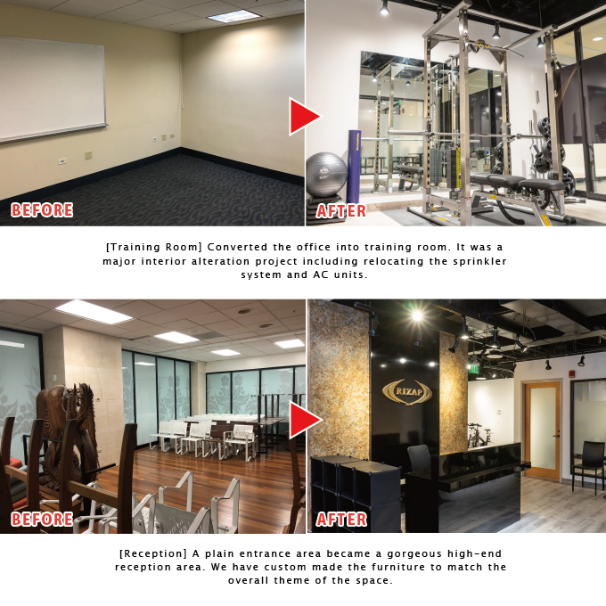 Focus Design Builders assisted with opening of their very first U.S. gym from location selection to designing and obtaining permits and construction. Opening a fitness gym in popular areas is challenging due to strict zoning regulations, but Focus Design Builders was able to find an optimum location in Waikiki and secured the lease. We met Rizap's budget and completed the project as planned.